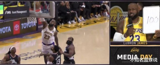 詹姆斯虽然从未参加扣篮大赛,但他无疑也是NBA顶级扣将,生涯有太多精彩隔扣。如今詹姆斯在新赛季媒体日接受Spectrum SportsNet采访,他给自己2019-20赛季隔扣别利察打10分,2021-22赛季隔扣好友乐福打9分,而2023-24赛季隔扣乔治打100分(夸张说法)。